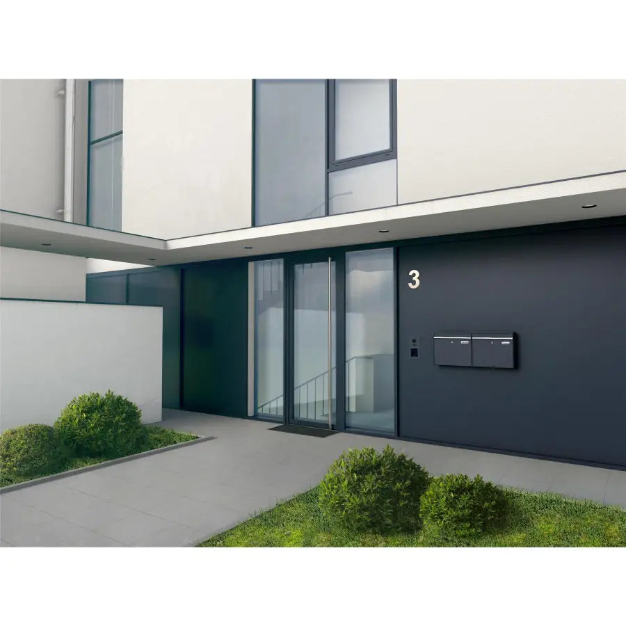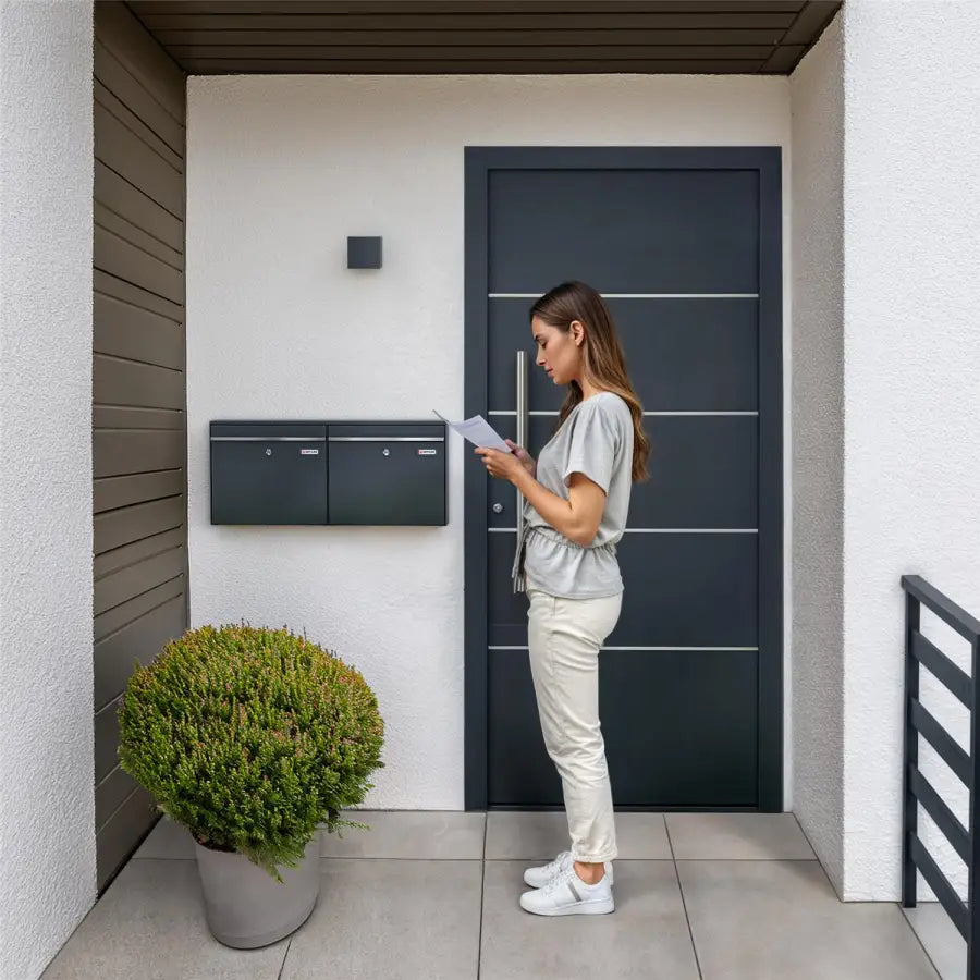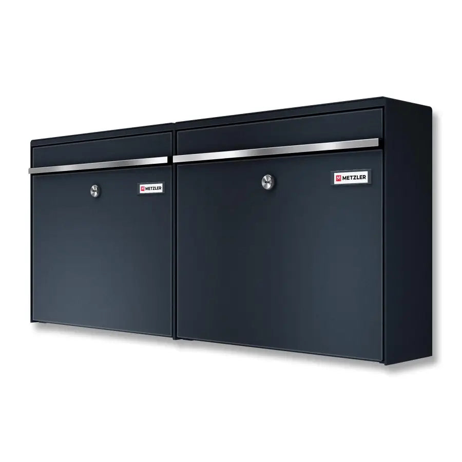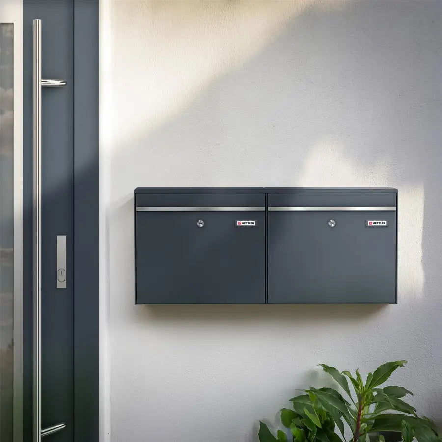| Tugev kahe postkasti komplekt, kvaliteetterasest. Vahetatavad nimesildid. Pulbervärvitud, antratsiithall RAL 7016. Integreeritud kaitsega ava hoiab posti võõra käe eest. Tootja: Metzler. Laius × Kõrgus × Sügavus: 78,00 × 34,30 × 11,60 cm |