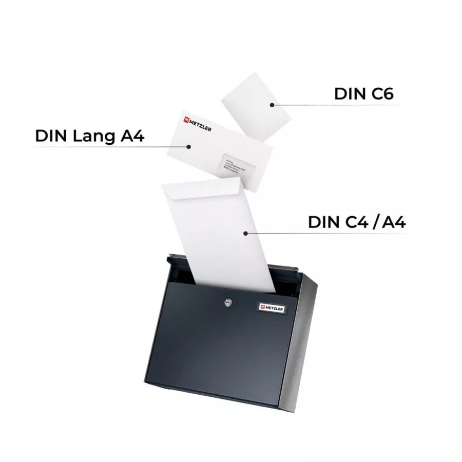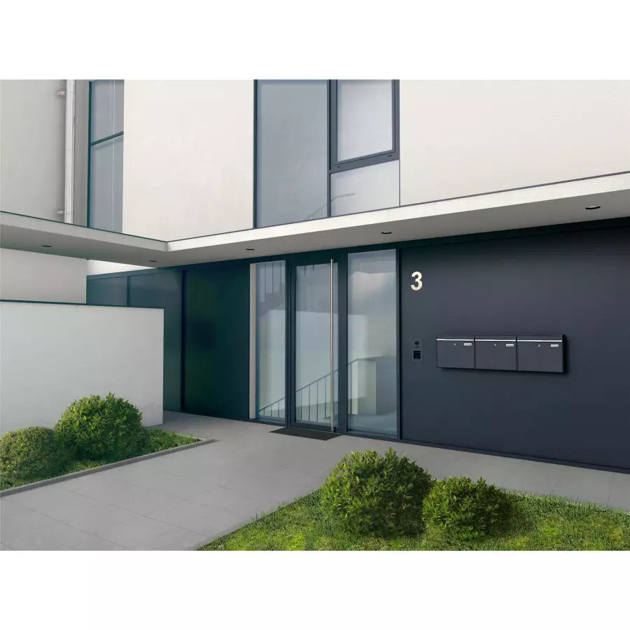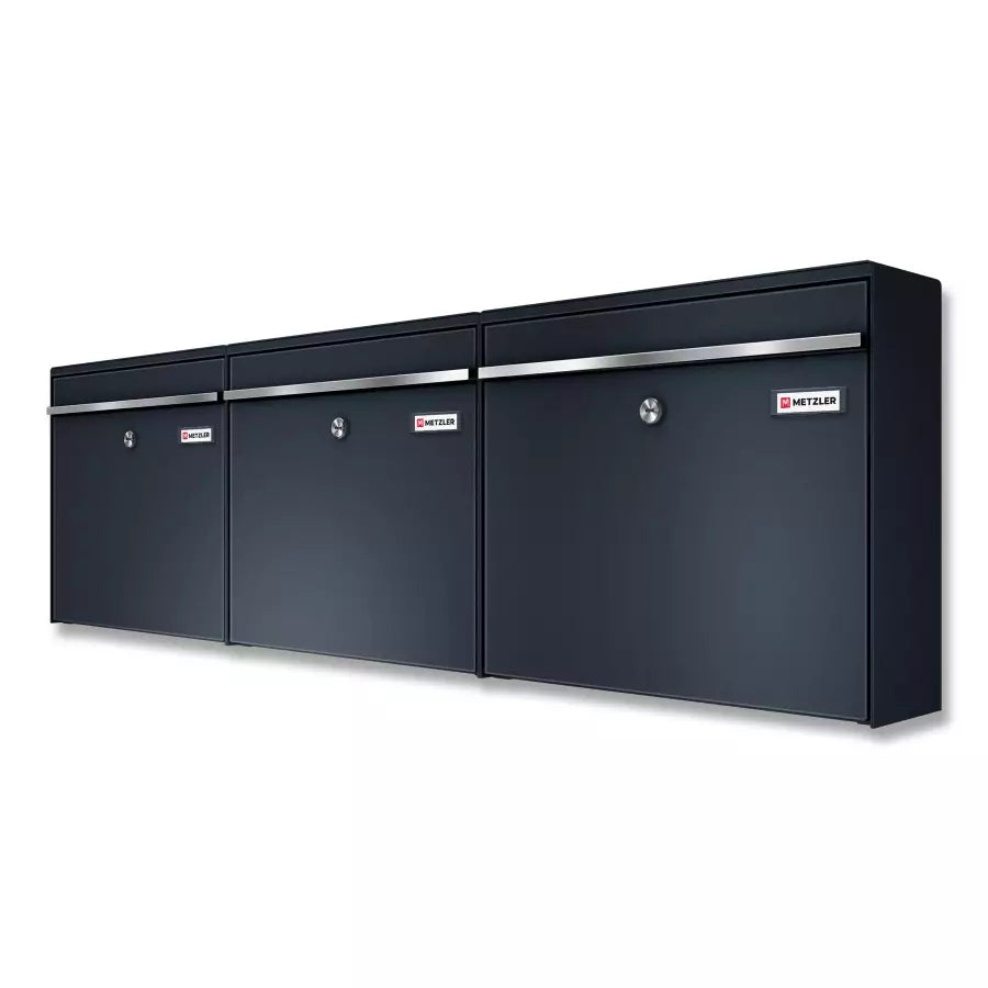 | Tugevad kortermaja postkastid, kvaliteetterasest. Vahetatavad nimesildid. Pulbervärvitud, antratsiithall RAL 7016. Integreeritud kaitsega ava hoiab posti võõra käe eest. Tootja: Metzler. Laius × Kõrgus × Sügavus: 117,00 × 34,30 × 11,60 cm. |