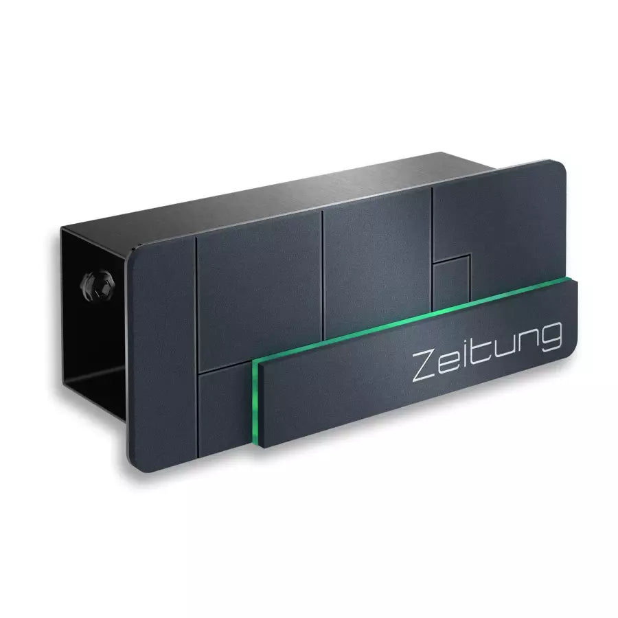 | Moodne ajalehesahtel on massiivsest roostevabast V2A-terasest, pulbervärvitud antratsiithalliks. Silmapaistvaks kaunistuseks on kriimustuskindlast satineeritud akrüülklaasist aknakesed. Kliendi soovitud graveering. Tootja: Metzler. Laius × Kõrgus × Sügavus: 33,00 × 13,00 × 9,80 cm. |