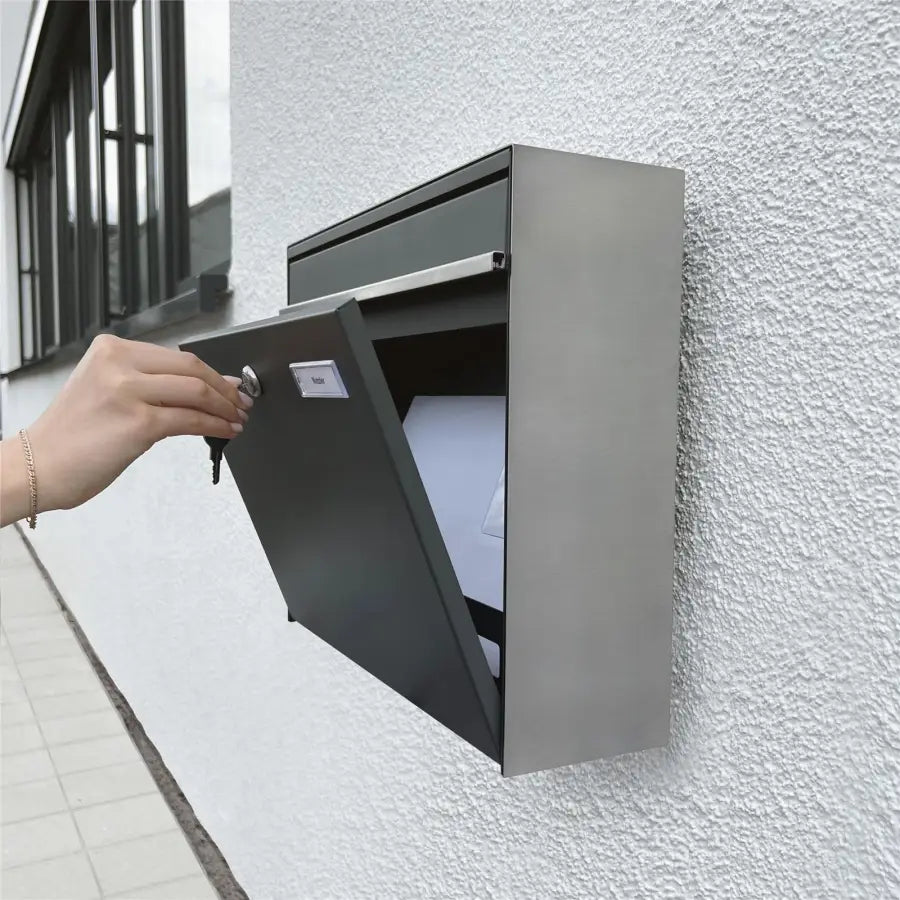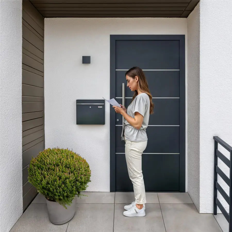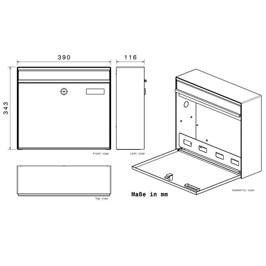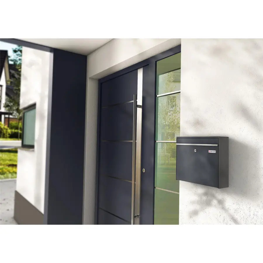 | Massiivne postkast on kvaliteetterasest. Vahetatava nimesildiga. Pulvervärv antratsiithall RAL 7016. Integreeritud kaitsega ava hoiab posti võõra käe eest. Tootja: Metzler. Laius × Kõrgus × Sügavus: 39,00 × 34,30 × 11,60 cm. |