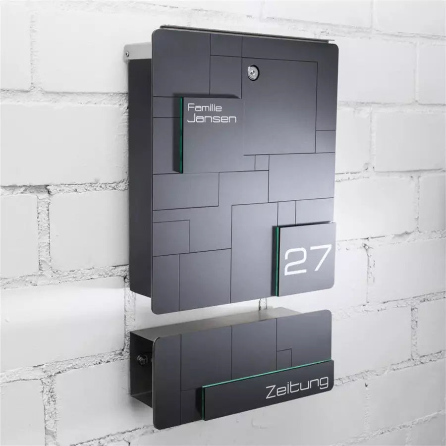 | Moodne postkast on massiivsest roostevabast terasest. Silmapaistvaks kaunistuseks on kriimustuskindlast satineeritud akrüülklaasist aknakesed. Võimalik lisada sobiv ajalehesahtel. Tootja: Metzler. Laius × Kõrgus × Sügavus: 33,00 × 38,00 × 9,50 cm. |