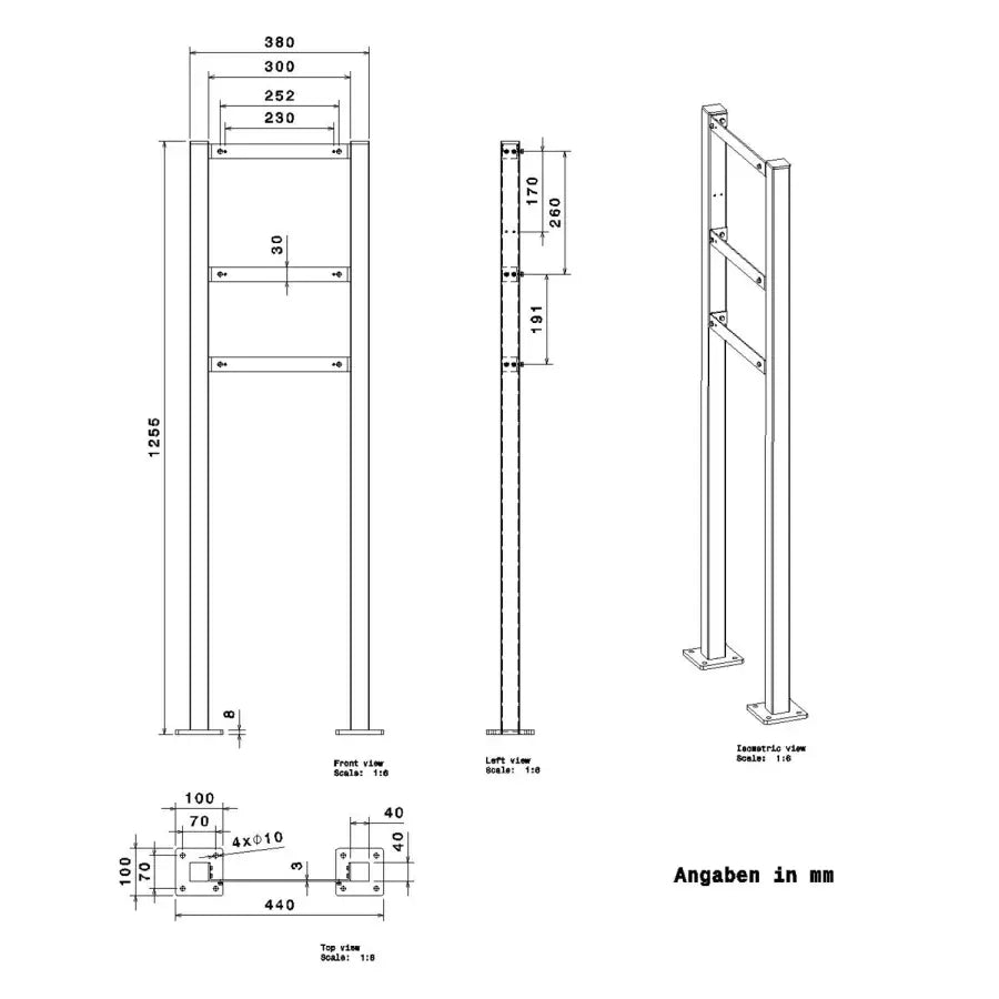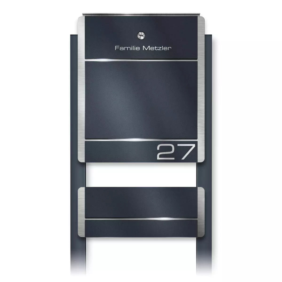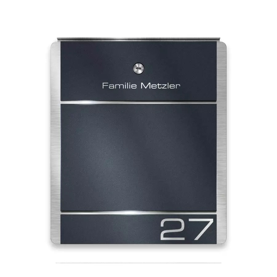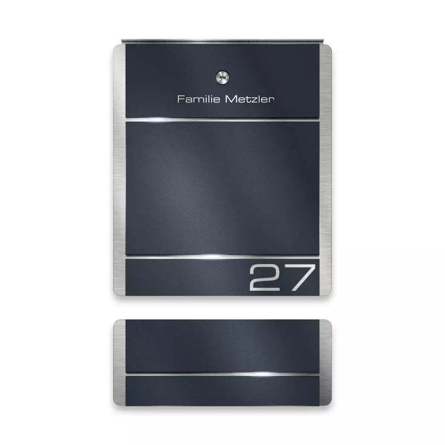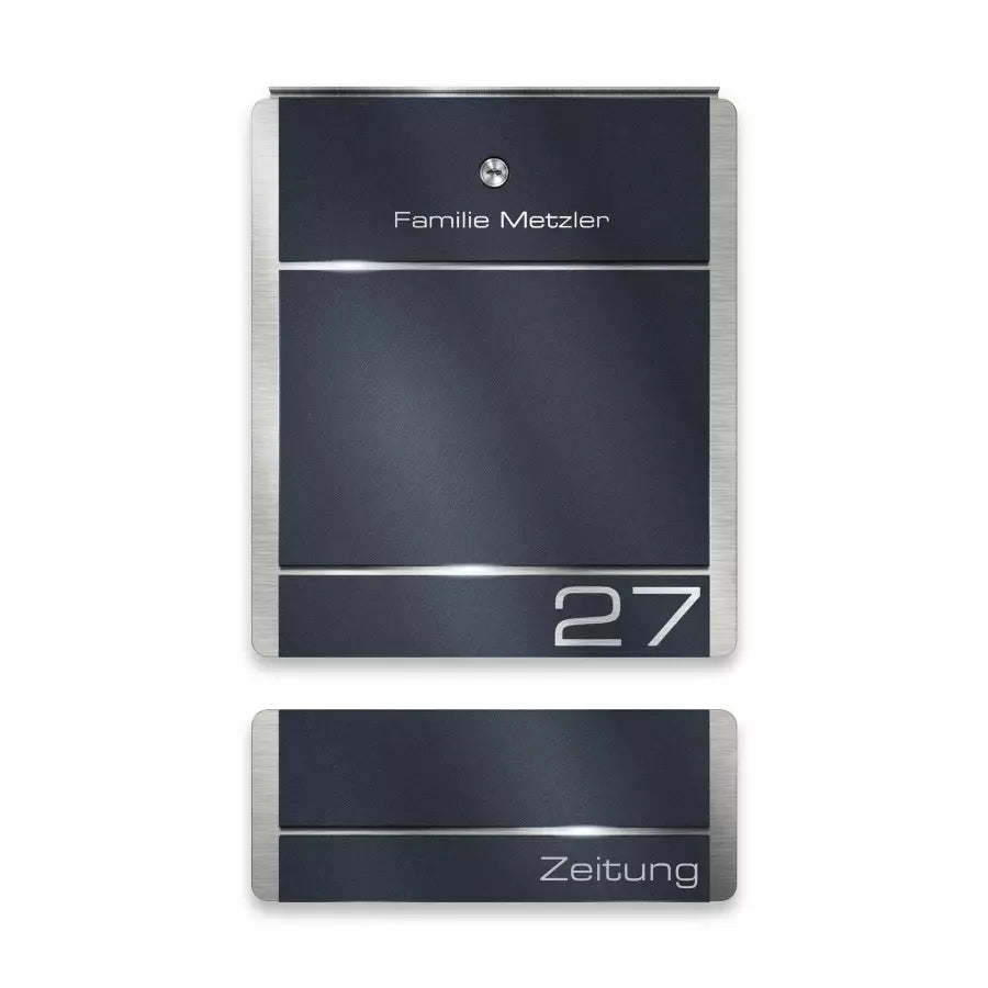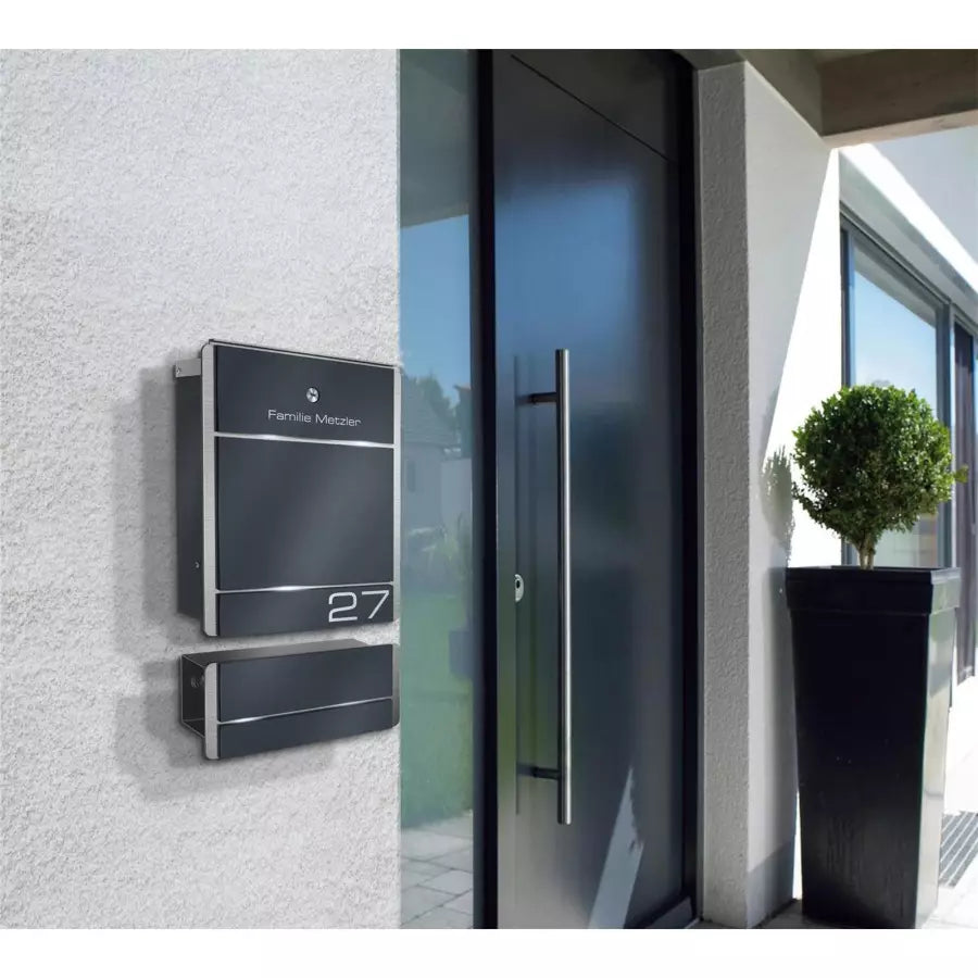 | Moodne jalaga postkast tuleb kruvidega kinnitada tasapinna külge. Roostevabast terasest ja akrüülklaasist, antratsiithalli värvi (RAL 7016). Võimalik lisada sobiv ajalehesahtel ja kliendi soovitud graveering. Tootja: Metzler. Laius × Kõrgus × Sügavus: 38,00 × 125,50 × 9,50 cm. |
