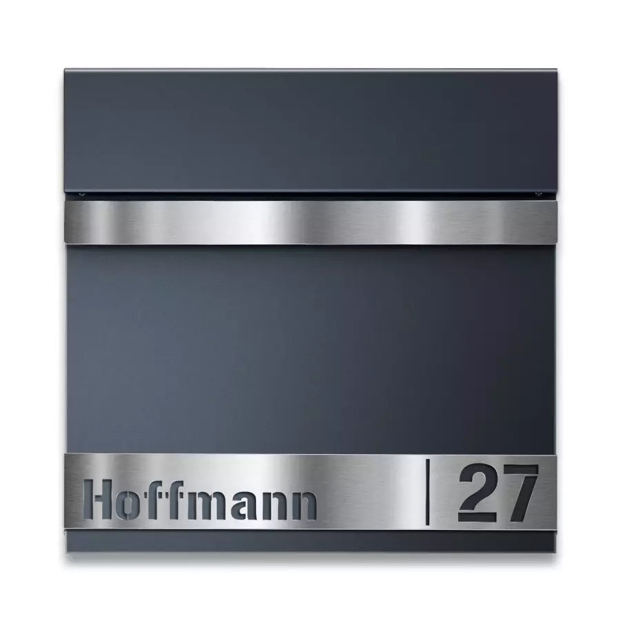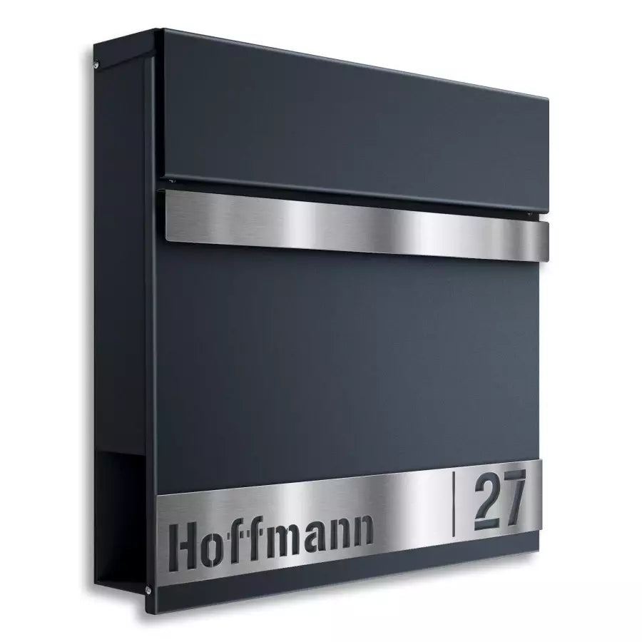 | Tugev jalaga postkast on kruvitav tasapinna külge. Antratsiithall kvaliteetteras. Roostevabast terasest liist, kliendi soovitud stantsitud nime ja majanumbriga. Integreeritud ajalehesahtel, mõlemast otsast avatud. Tootja: Metzler. Laius × Kõrgus × Sügavus: 37,00 × 120,00 × 10,50 cm. |