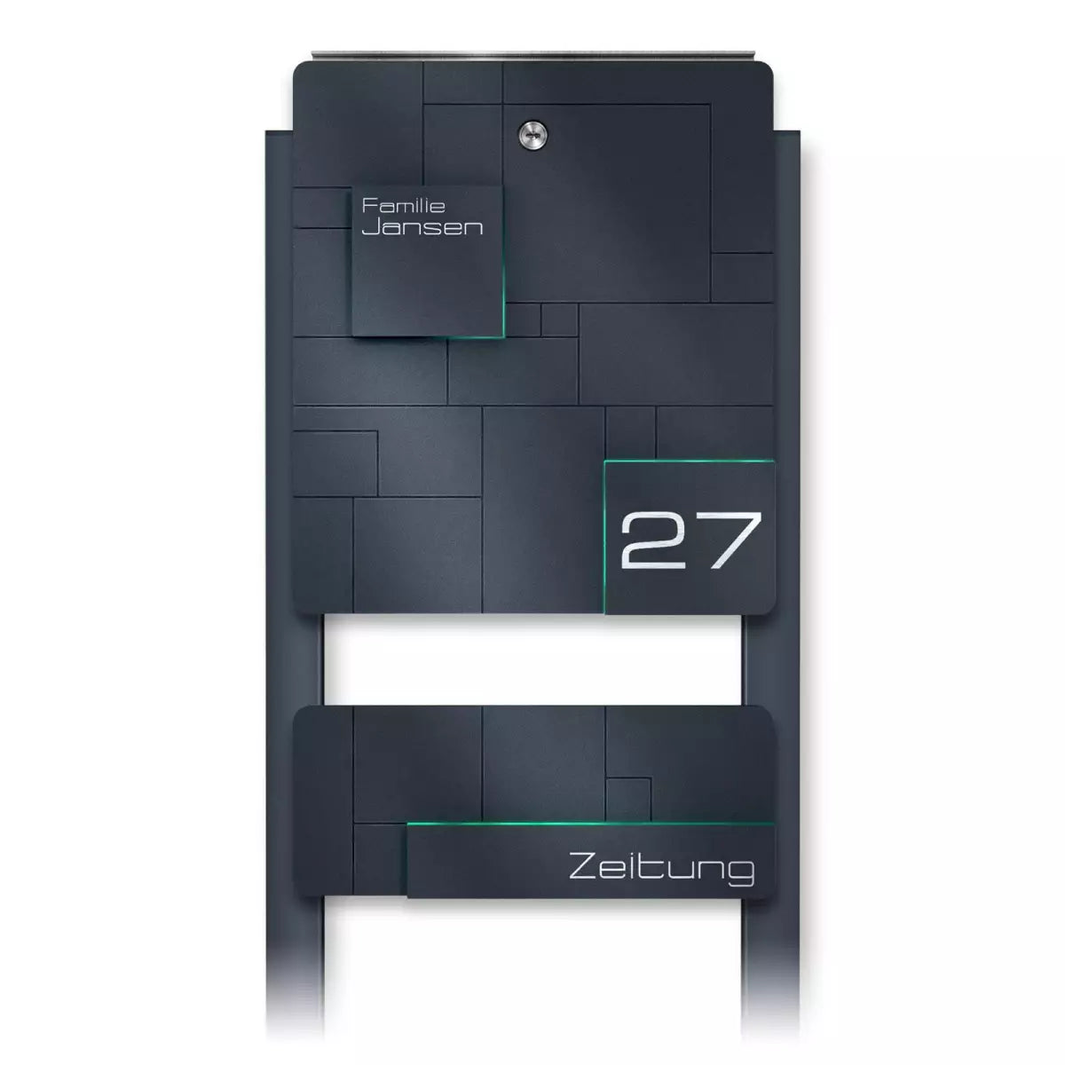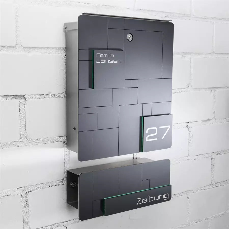 | Moodne jalaga postkast tuleb kruvidega kinnitada tasapinna külge. Massiivsest roostevabast terasest, antratsiithall. Silmapaistev kaunistus on kriimustuskindlast satineeritud akrüülklaasist. Võimalik lisada sobiv ajalehesahtel ja kliendi soovitud lasergraveering. Tootja: Metzler. Laius × Kõrgus × Sügavus: 38,00 × 125,50 × 10,00 cm. |