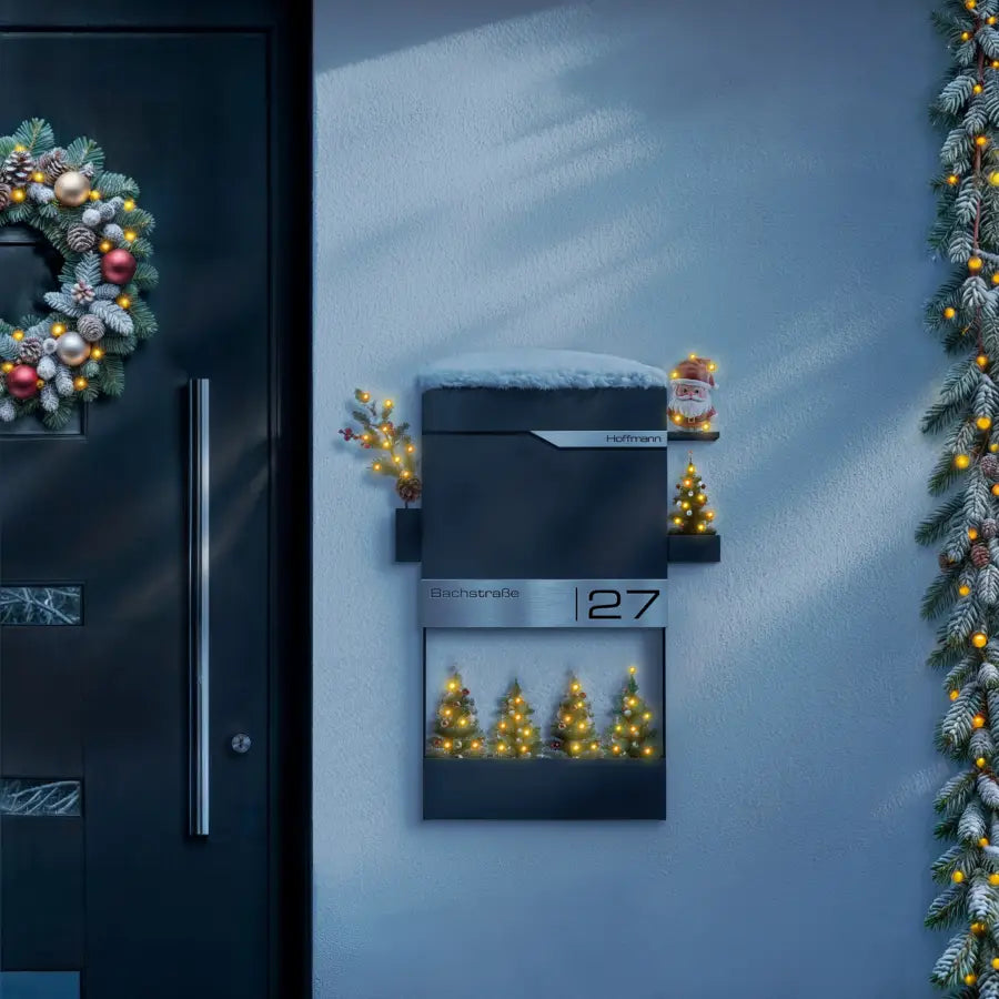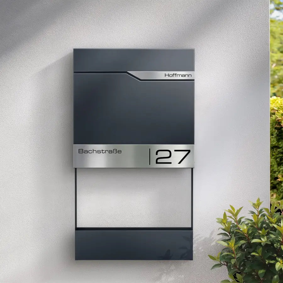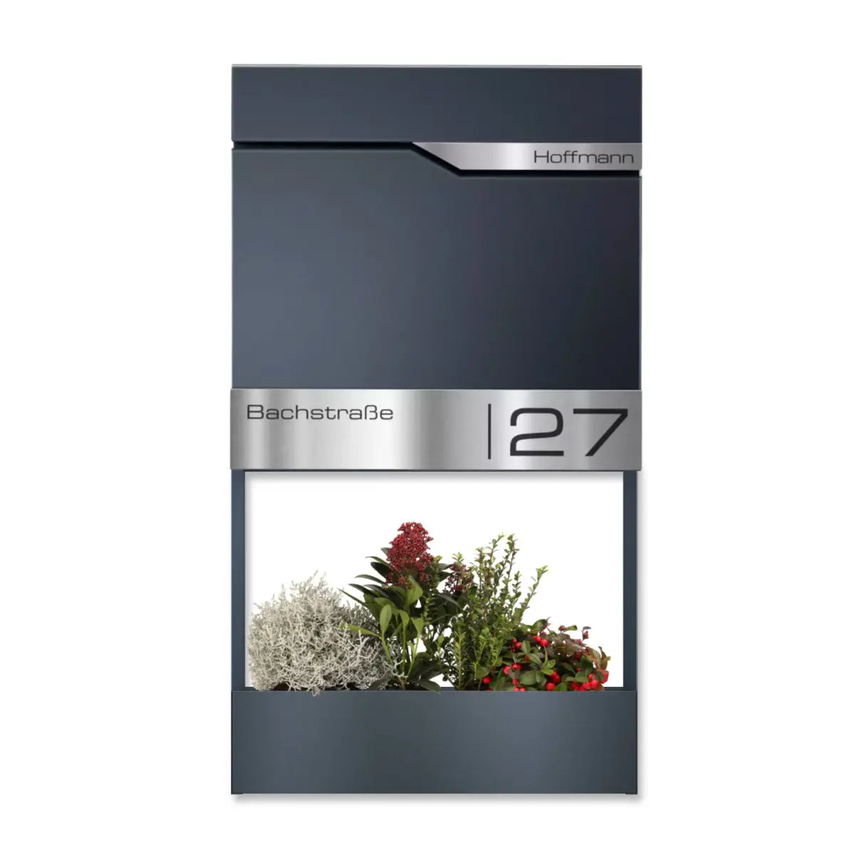 | Postkast Siebert, lilllekastiga - lisa dekoratsioonid või taimed. Roostevabast V4A terasest liistud, kliendi soovitud graveeringuga. Ilmastikukindlaks pulbervärvitud, antratsiithall RAL 7016. Nutikas integreeritud ajalehesahtel, mõlemast otsast avatud. Kaasas 2 võtit ja paigaldustarvikud. Tootja: Metzler. Laius × Kõrgus × Sügavus: 37,00 × 65,50 × 10,50 cm. |