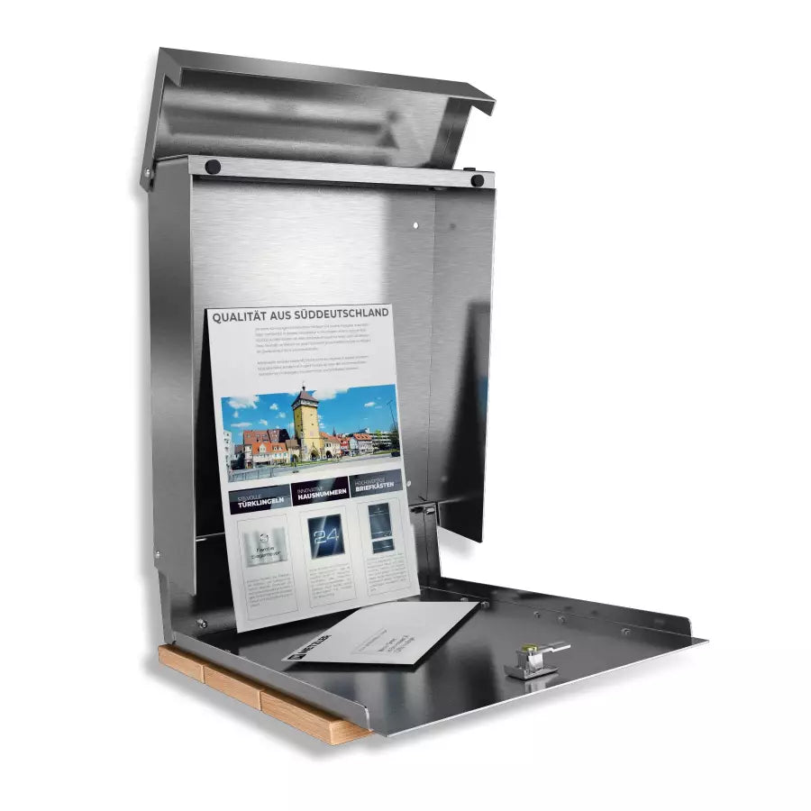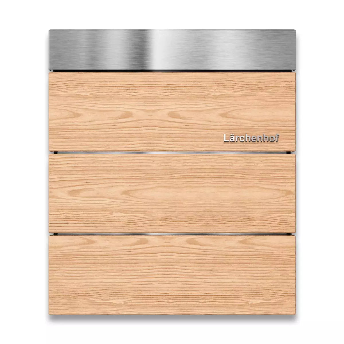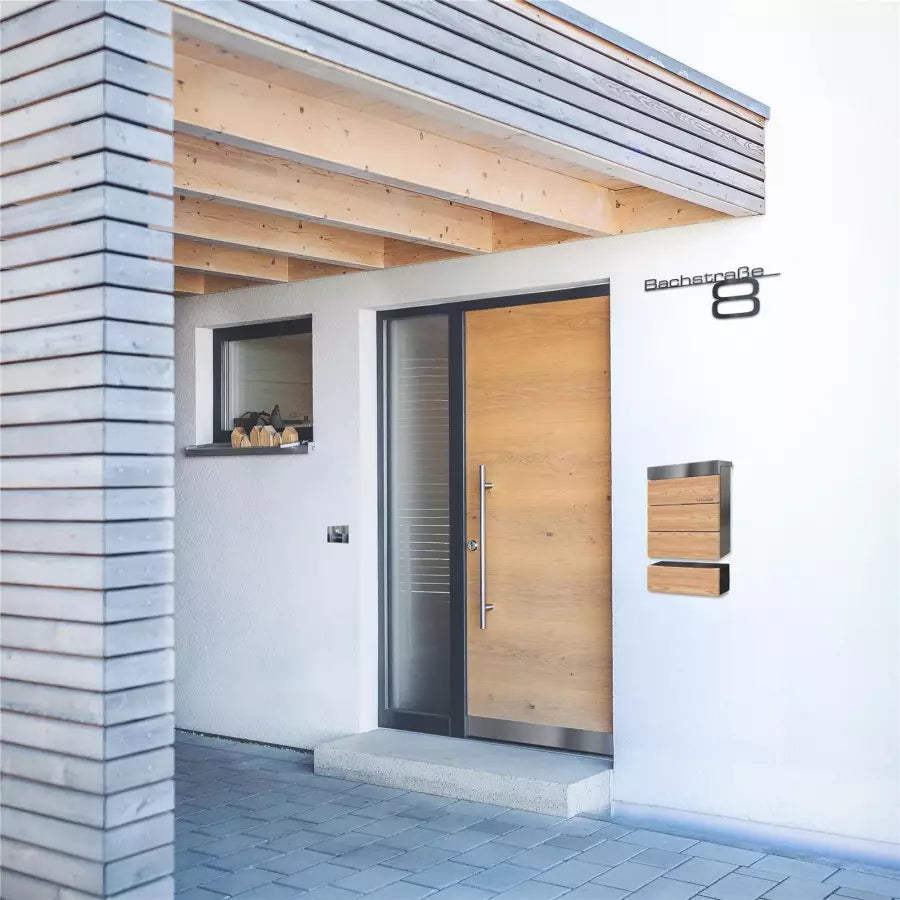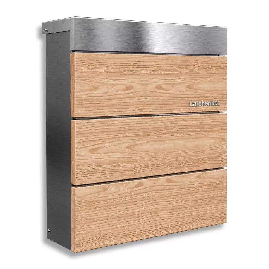 | Massiivne postkast on roostevabast terasest V2A ja ehtsast lehisepuidust. Metzleri Masiva kollektsioon. Võimalik lisada sobiv ajalehesahtel ja profileeritud tähtedest kliendi soovitud kiri. Tootja: Metzler. Laius × Kõrgus × Sügavus: 33,00 × 35,00 × 9,15 cm. |