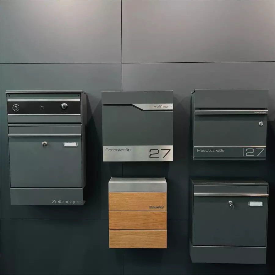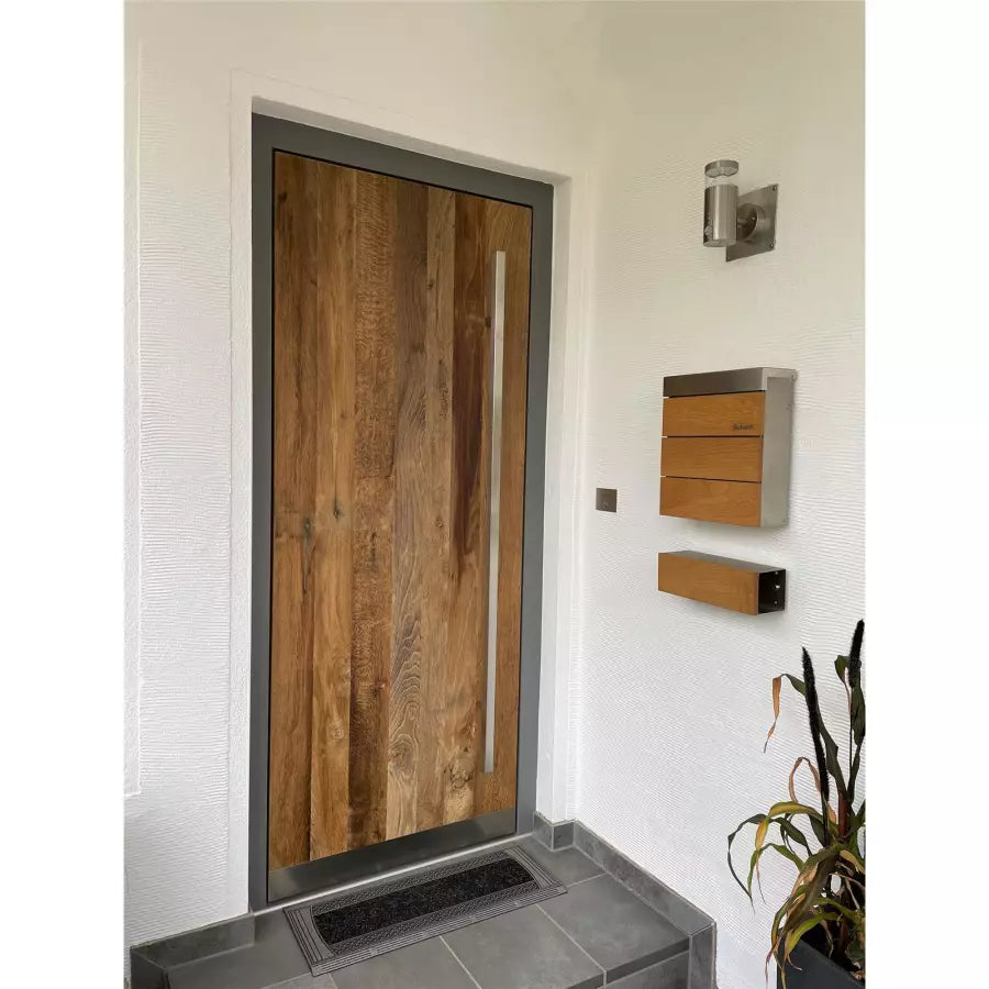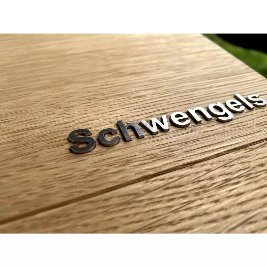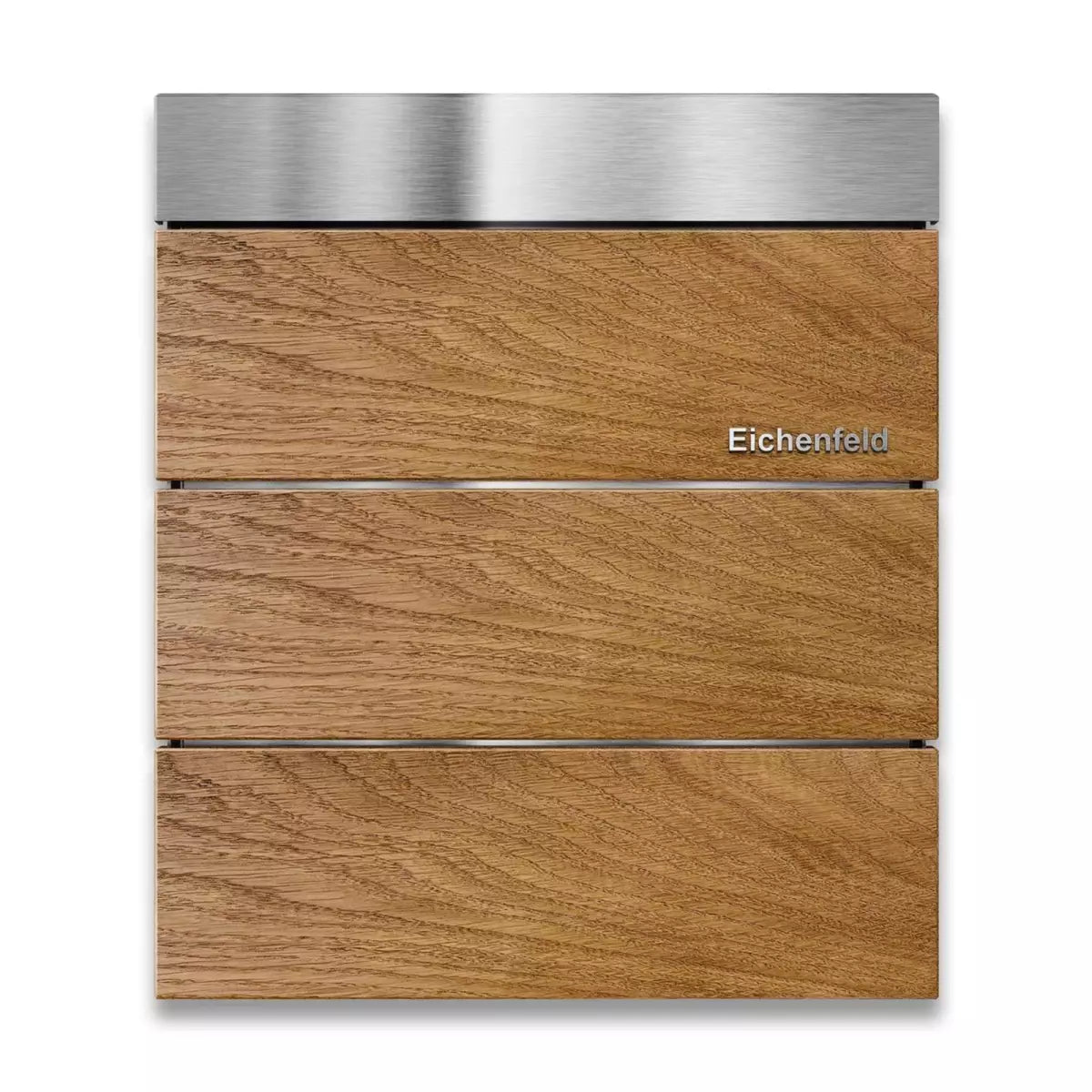 | Massiivne postkast on roostevabast terasest V2A ja ehtsast tammepuidust. Metzleri Masiva kollektsioon. Võimalik lisada sobiv ajalehesahtel. Profileeritud tähtedest kliendi soovitud kiri. Tootja: Metzler. Laius × Kõrgus × Sügavus: 33,00 × 35,00 × 9,15 cm. |