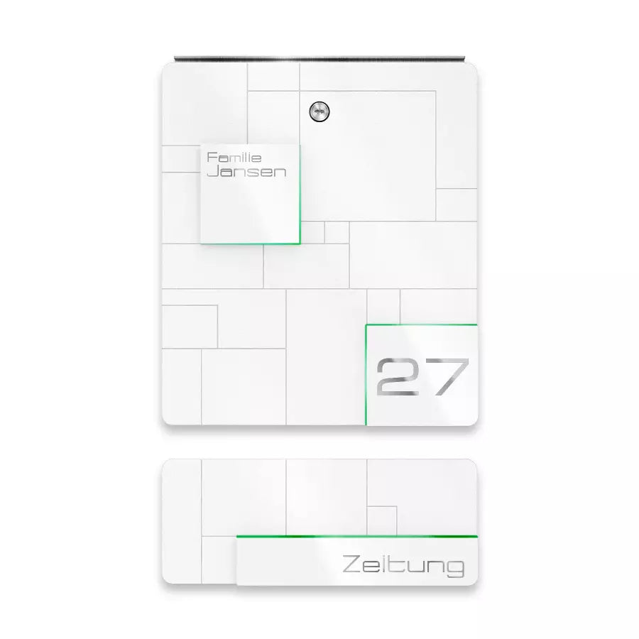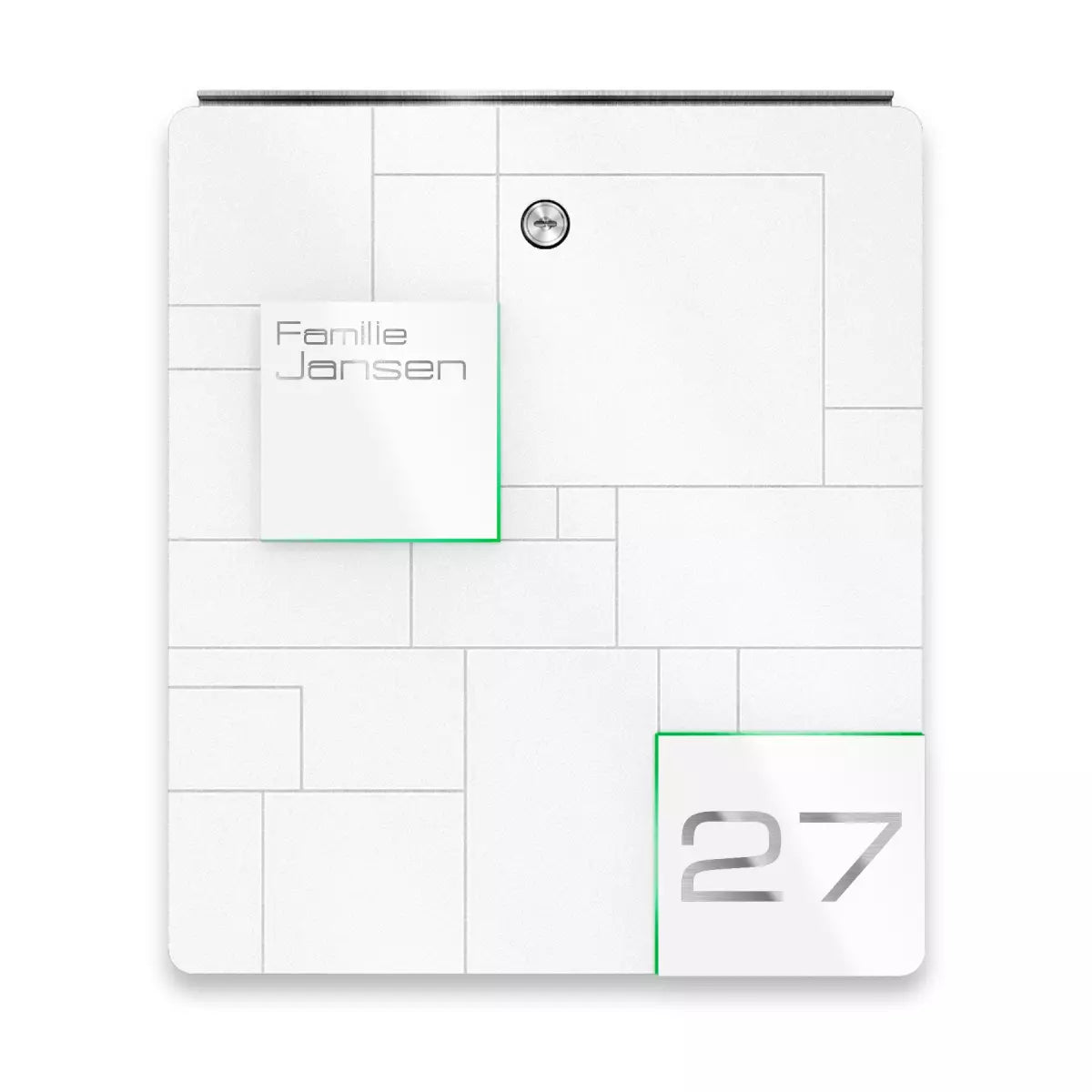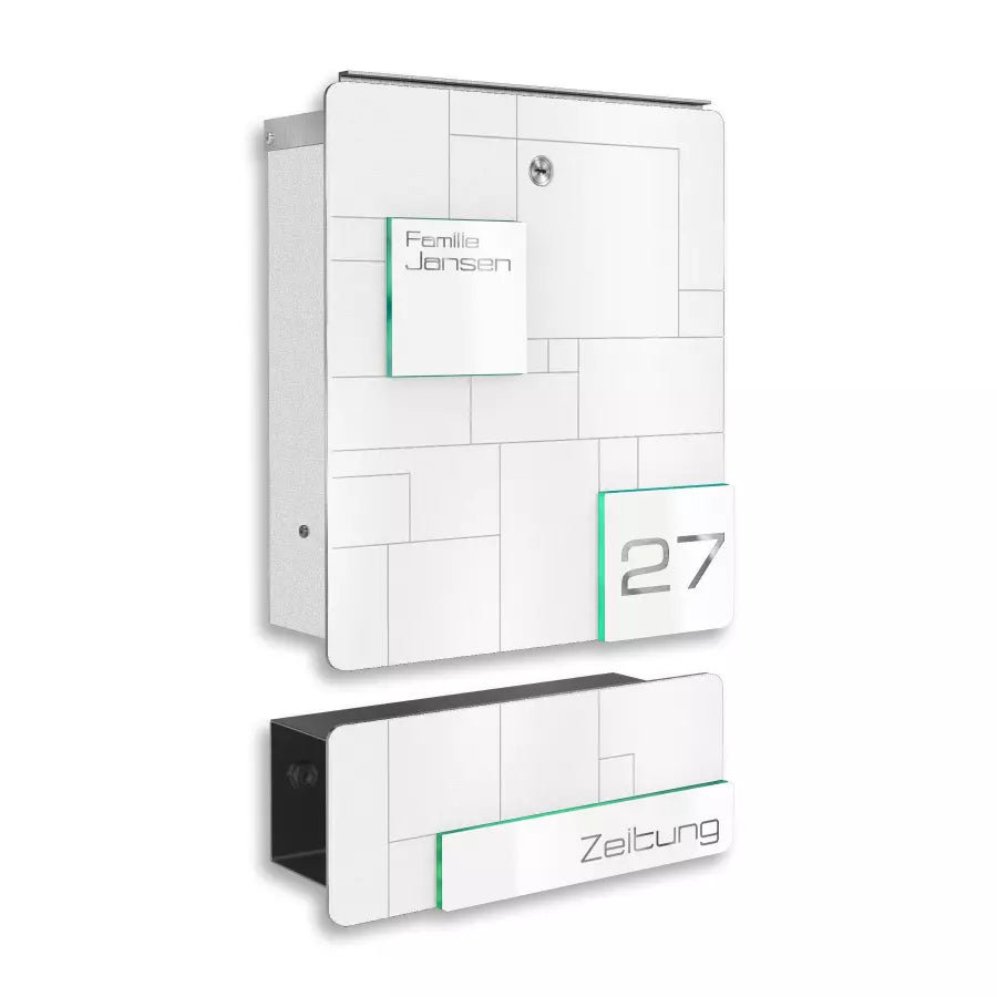| Moodne postkast on massiivsest roostevabast terasest, pulbervärvitud lumivalgeks. Silmapaistvaks kaunistuseks on kriimustuskindel akrüülklaas. Võimalik lisada sobiv ajalehesahtel. Kliendi soovitud graveering. Tootja: Metzler. Laius × Kõrgus × Sügavus: 33,00 × 38,50 × 9,50 cm. |
